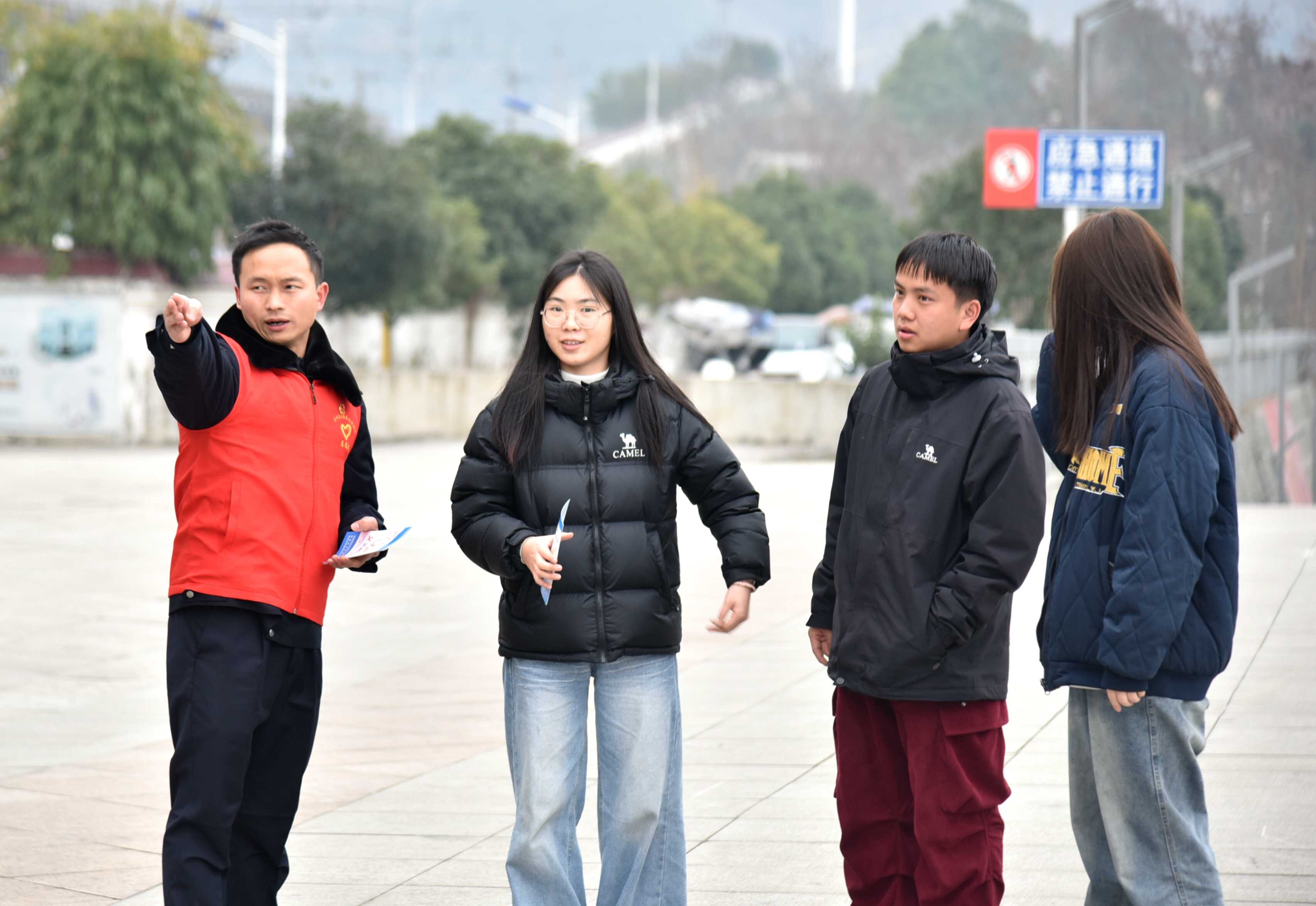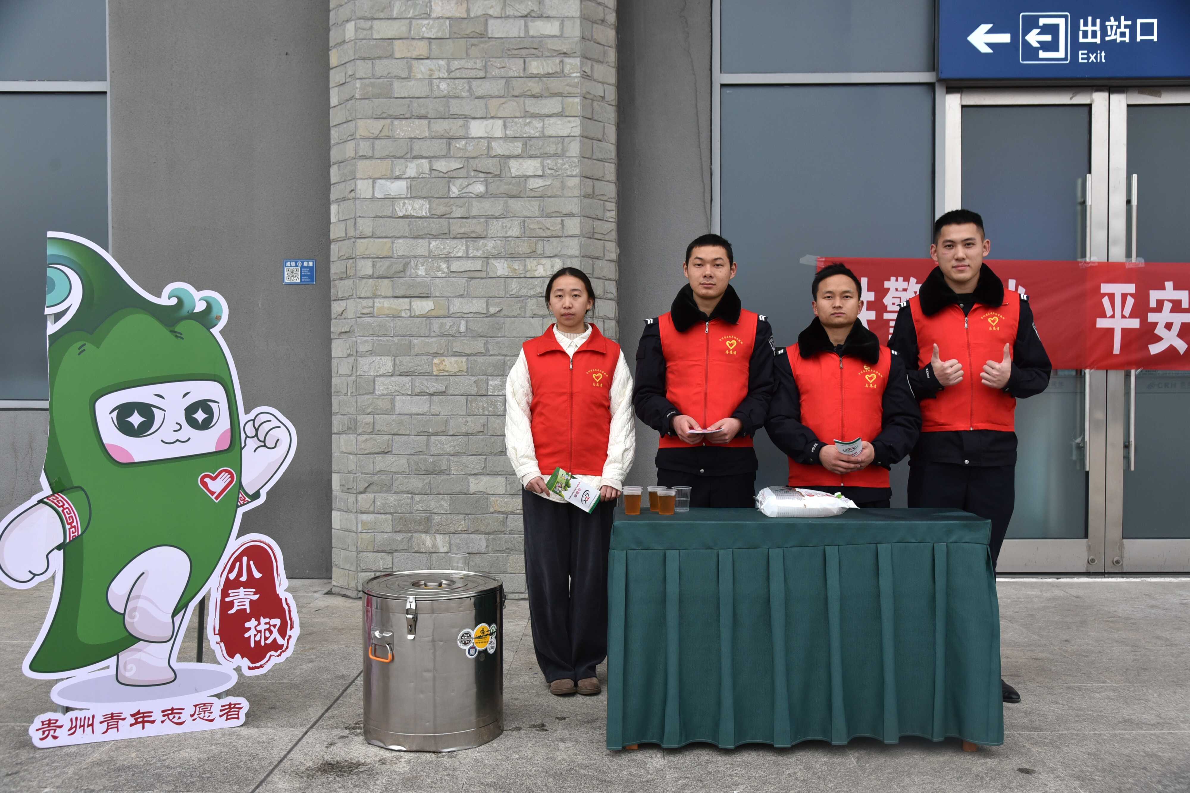 1月22日下午,未成年犯管教所团委工会党支部联合贵定北站派出所、贵定县高铁北站开展了“青年志愿行,温暖回家路——暖冬行动”,用温情的态度、实际的行动助力返乡旅客温暖愉悦回家。活动中,青年志愿者们身着统一的红色马甲,把这一抹红点缀在了贵定县高铁北站广场上,他们用“微笑、热情、真诚”为返乡旅客提供咨询、义诊、送姜汤等服务。