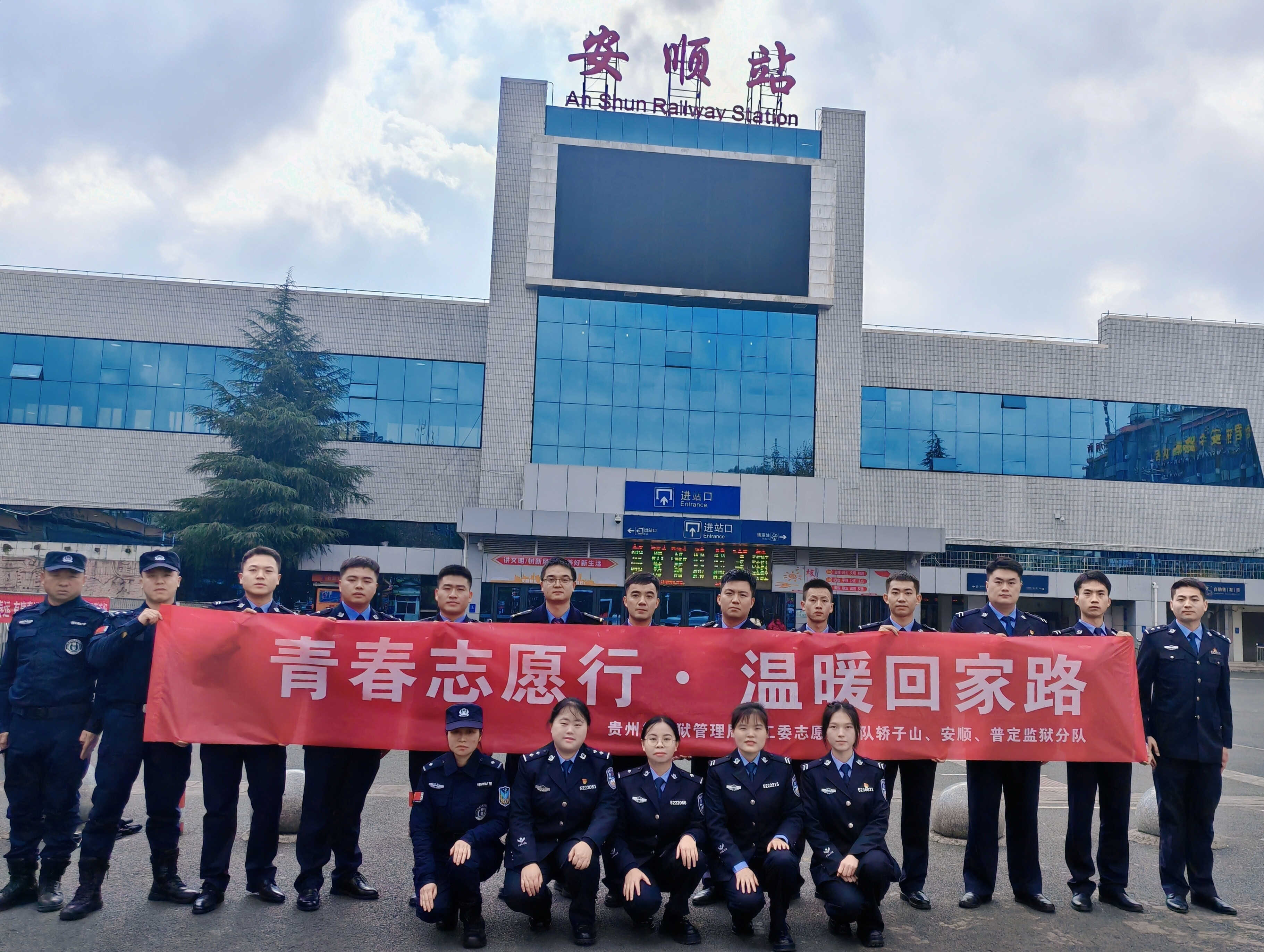 新春佳节到来之际,安顺监狱团委与普定监狱、轿子山监狱团委联合组织团员和青年民警到安顺市火车站,开展“青春志愿行·温暖回家路”志愿服务活动。