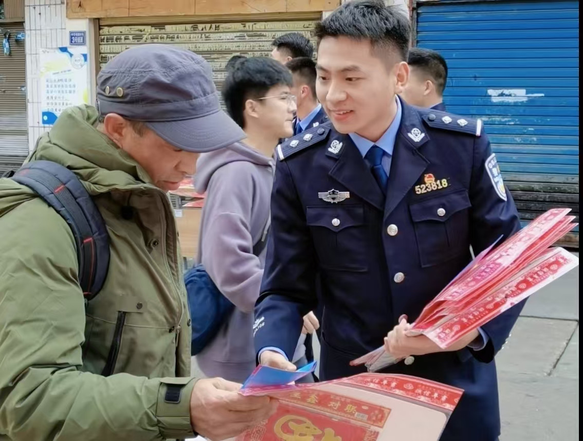 活动现场,民警每送出一副春联或福字,都会附上一本反诈宣传手册。耐心讲解春节期间常见的网络红包诈骗、冒充亲友诈骗、购物退款诈骗等类型;反复叮嘱旅客一定要提高警惕,守护好自己的钱袋子。