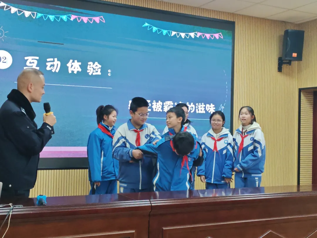 “同学们知道吗?法律就像空气一样,看不见却时刻保护着我们。”民警王信的开场白瞬间吸引了全场的目光,他巧妙地将《中华人民共和国民法典》《中华人民共和国未成年人保护法》中关于校园欺凌、网络诈骗的条款,转化为“小明与同桌的故事”“游戏皮肤陷阱”等情景案例。当大屏幕上播放由真实案件改编的短片时,孩子们屏息凝神,看到主人公因法治意识淡薄误入歧途又最终被法律救赎的结局,教室里响起阵阵掌声。