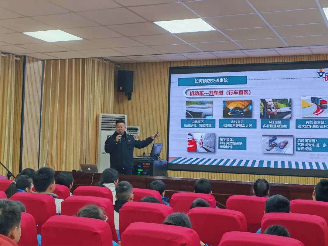 在随后的安全课上,民警李军化身“安全指挥官”,他抛出疑问——“左转车辆盲区有多大?”随着播放动画宣传片,孩子们惊呼着发现司机视角竟完全看不到1米高的障碍物。在消防安全教育环节,民警从在家在校用电用火的常见场景入手,分析其中存在的触电和失火风险,引导大家主动学习逃生救援知识。本次课程还特别设置了“家庭安全作业”,要求学生与家长共同绘制家庭逃生路线图。