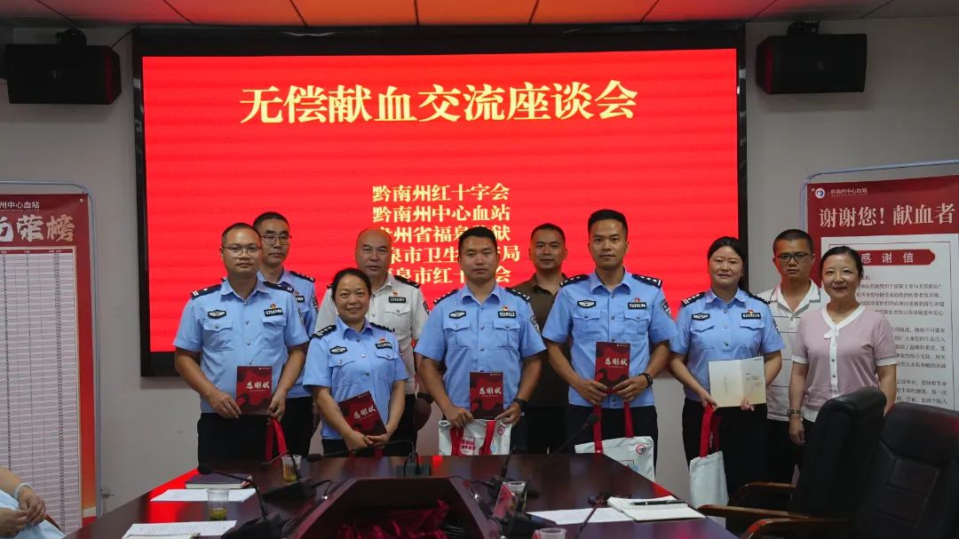 会上,黔南州红十字会、黔南州中心血站向监狱无偿献血1000毫升民警代表颁发了感谢状。